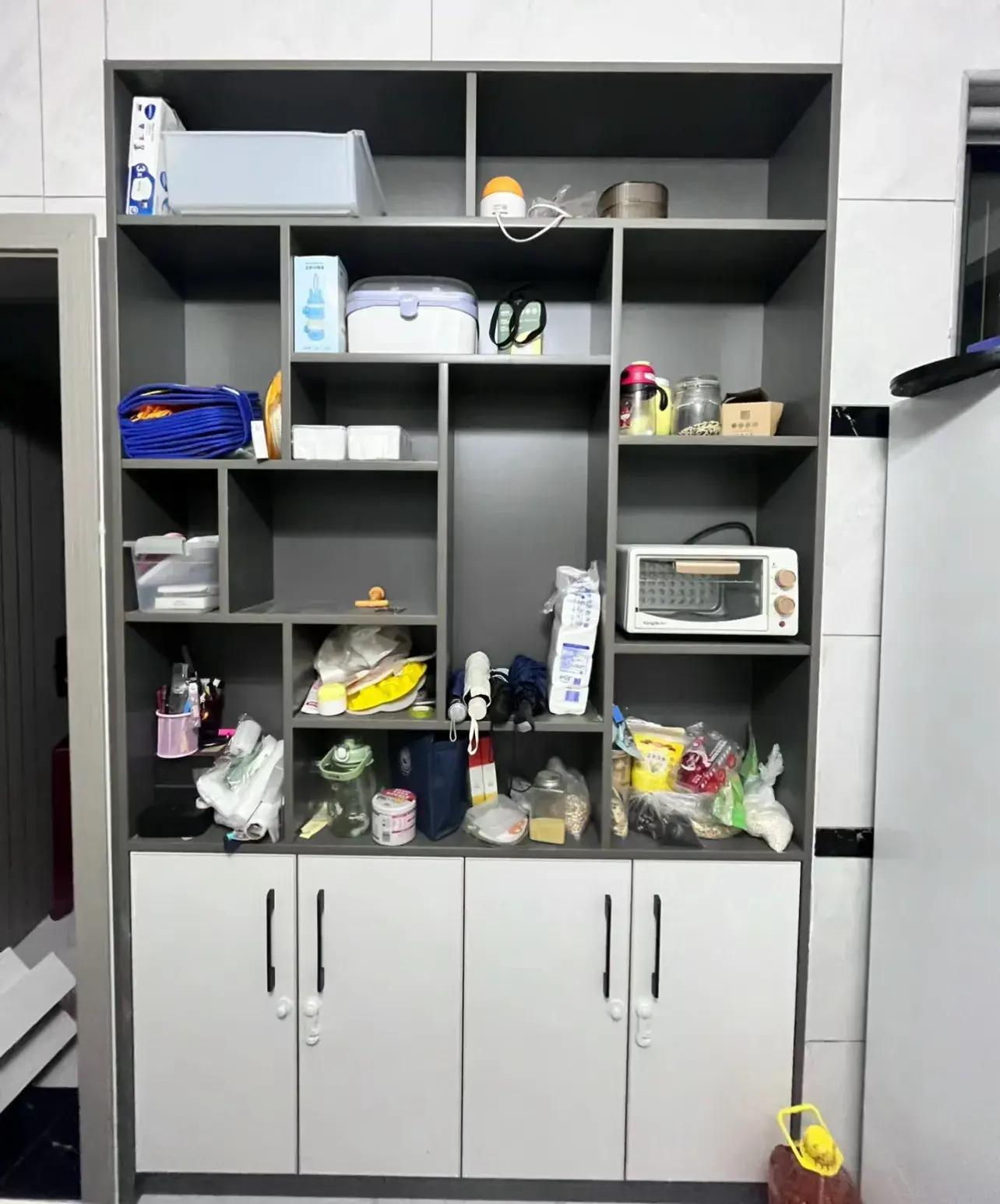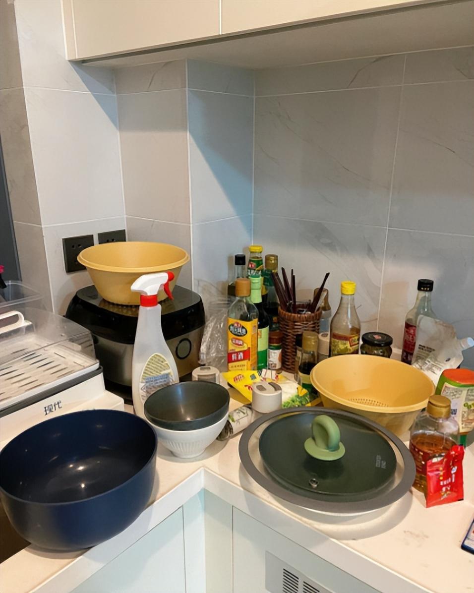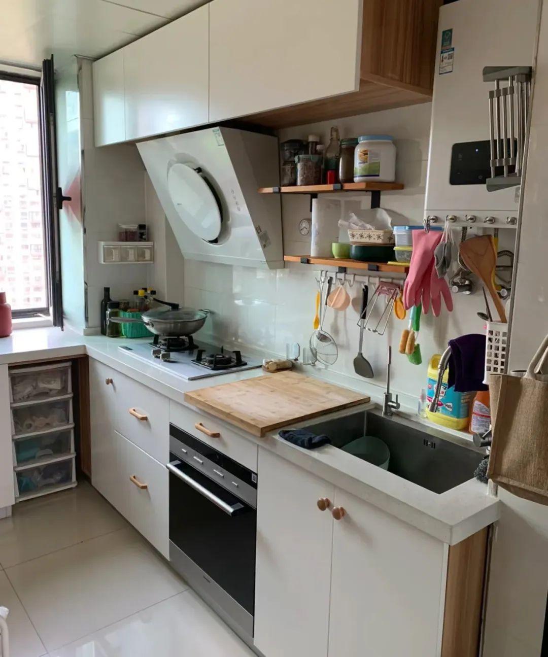 廚房也是一個考驗收納能力的地方,面積小,東西碎且多。一做飯,經常性的場景是檯面上“琳琅滿目”