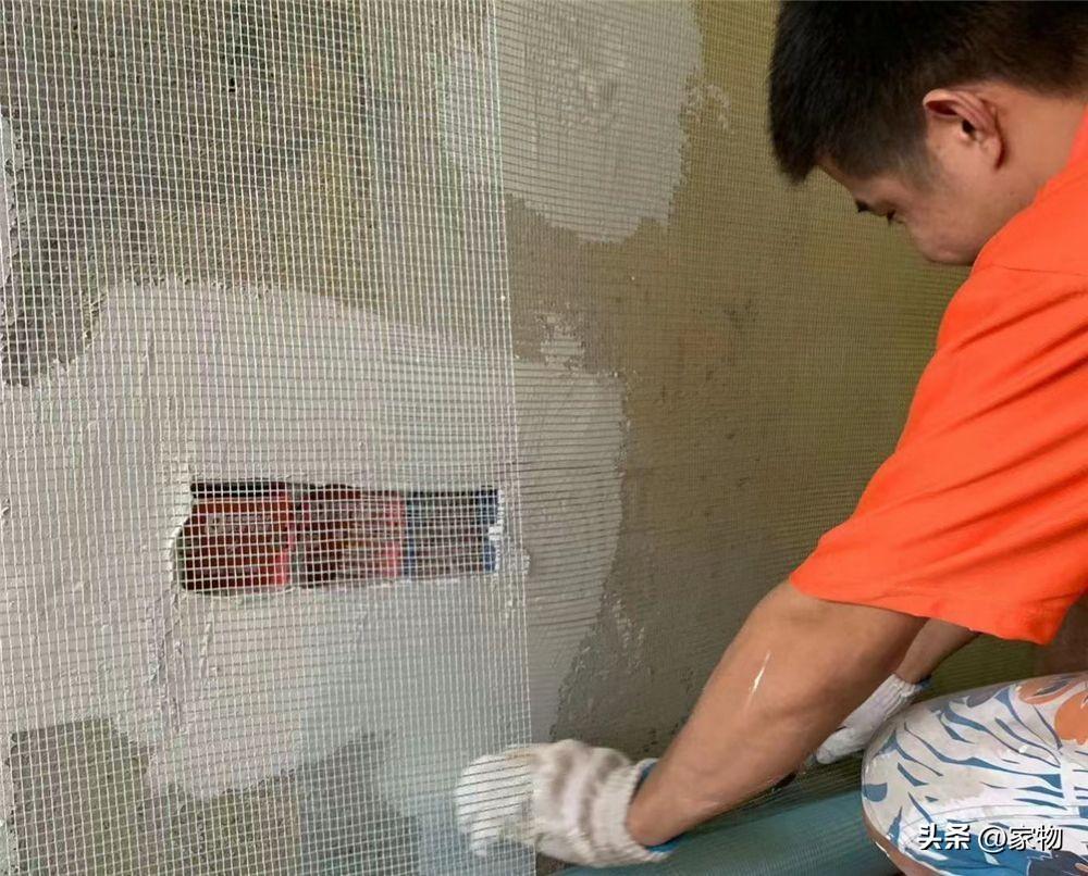 掛網,記住千萬不能同意油工師傅全屋掛網的建議,只需要在新砌牆的接縫處、完全新砌牆體處,以及開槽的位置掛網就足夠了,它就是一個穩固牆面塗料的作用,避免後期開裂。
