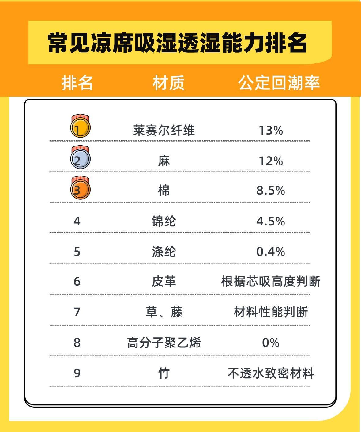 可以看出,天然涼蓆材料,基本都在吸溼透溼能力的下游。