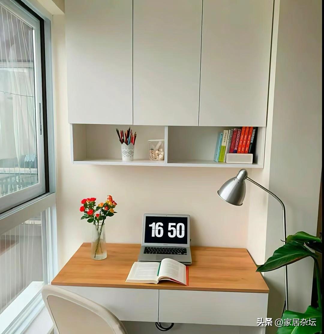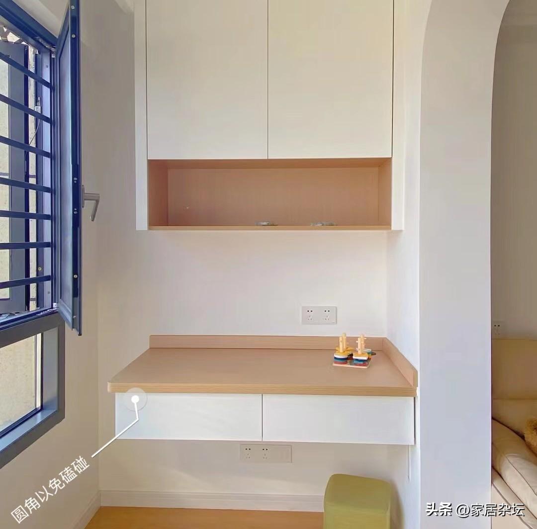 ①、書桌的做法。書桌,建議大家與櫃子配套,上面做書櫃,下面做書桌。書桌尺寸不要太大,寬度在50釐米,長度在1米到1.2米之間。