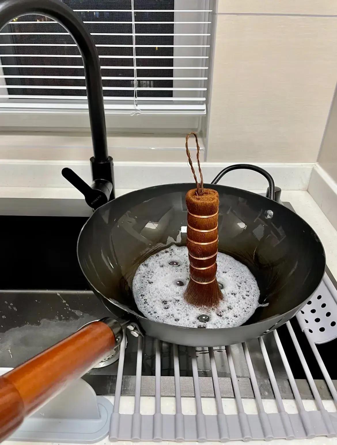 平時洗鍋時,用洗碗棉洗不掉的地方,用它噌噌兩下就刷乾淨了,又不會像鋼絲球一樣摩擦力太強,尤其對鐵鍋和不粘鍋,非常友好。