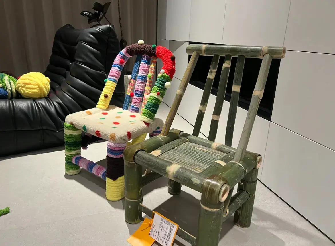 我還特意看了下過程,非常簡單,利用凳子本身的孔,把毛線往上纏就行,大家完全可以照做。