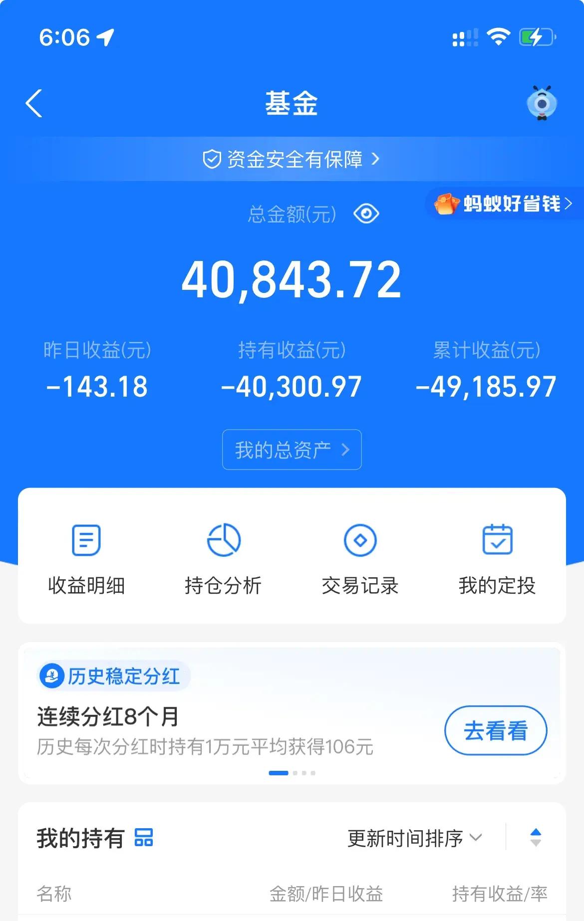 網友@zeo清清啊說,看不起定期那點小利,非要學着人家碰股票、基金,結果理財三年,虧損比餘額多。