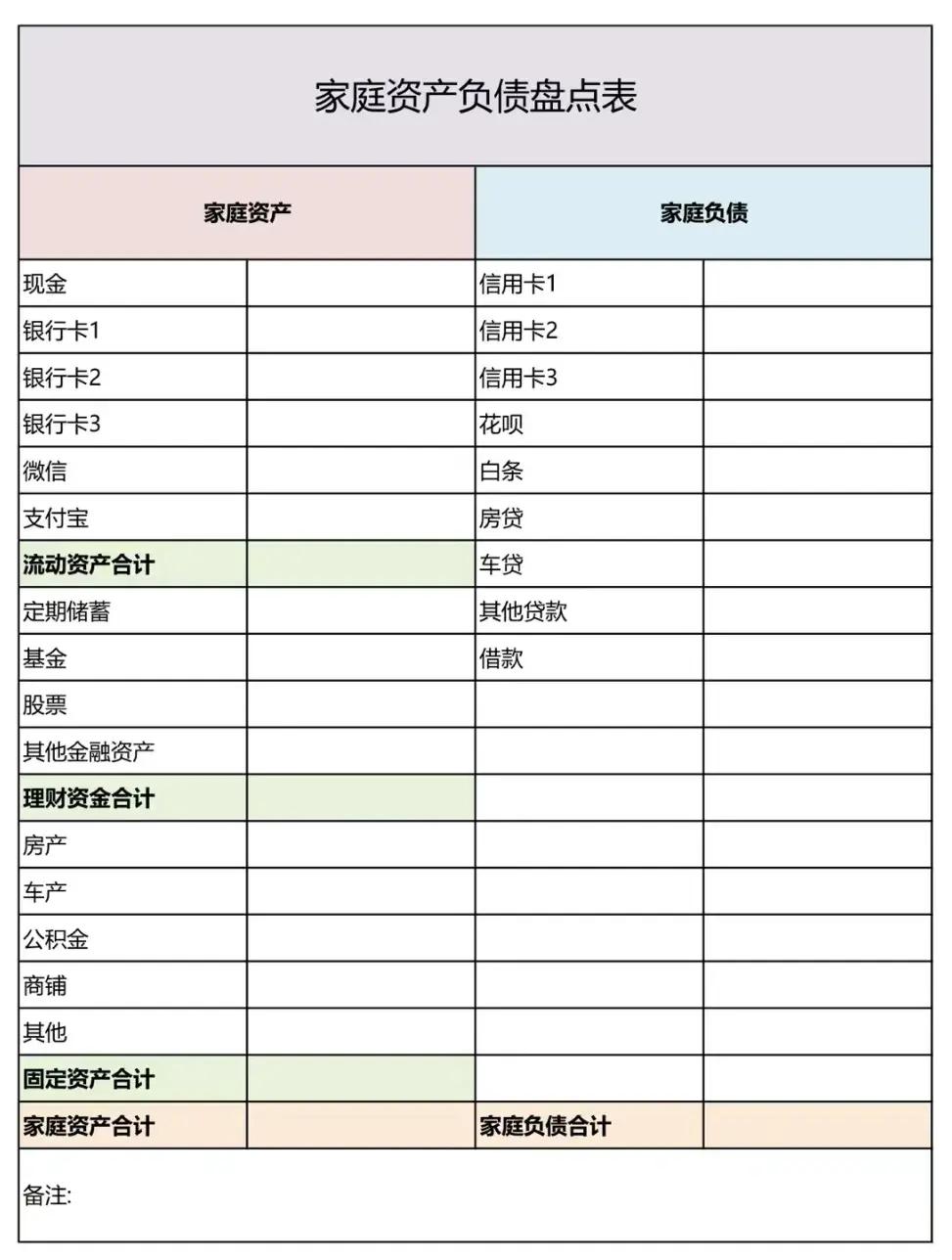 說到存款了,那這家庭中最重要的一項不能少——家庭資產負債表。