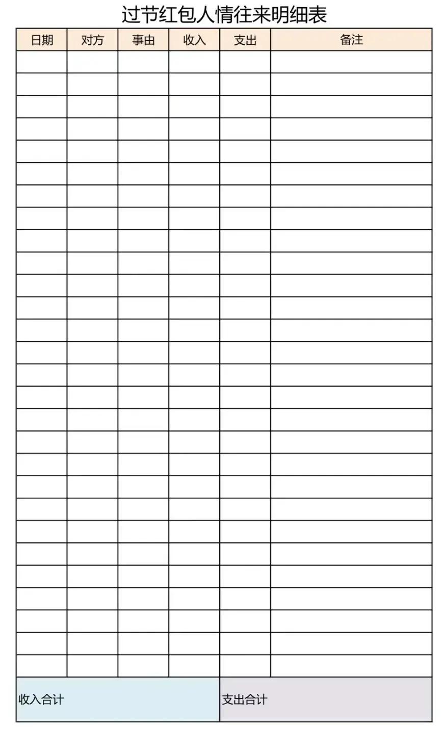 關於錢的,還有一個需要記表的,那就是人情往來表。