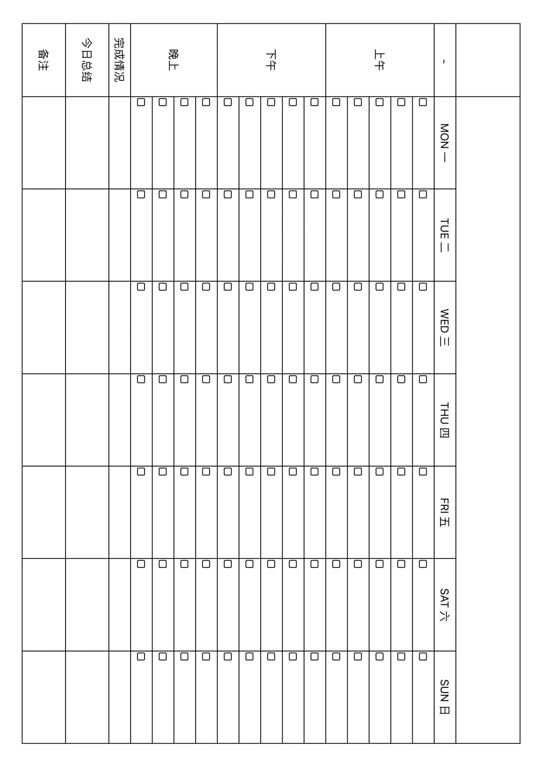 周計劃,我會稍微粗略點,採用三段式計劃表,大概列出重要的事情即可。