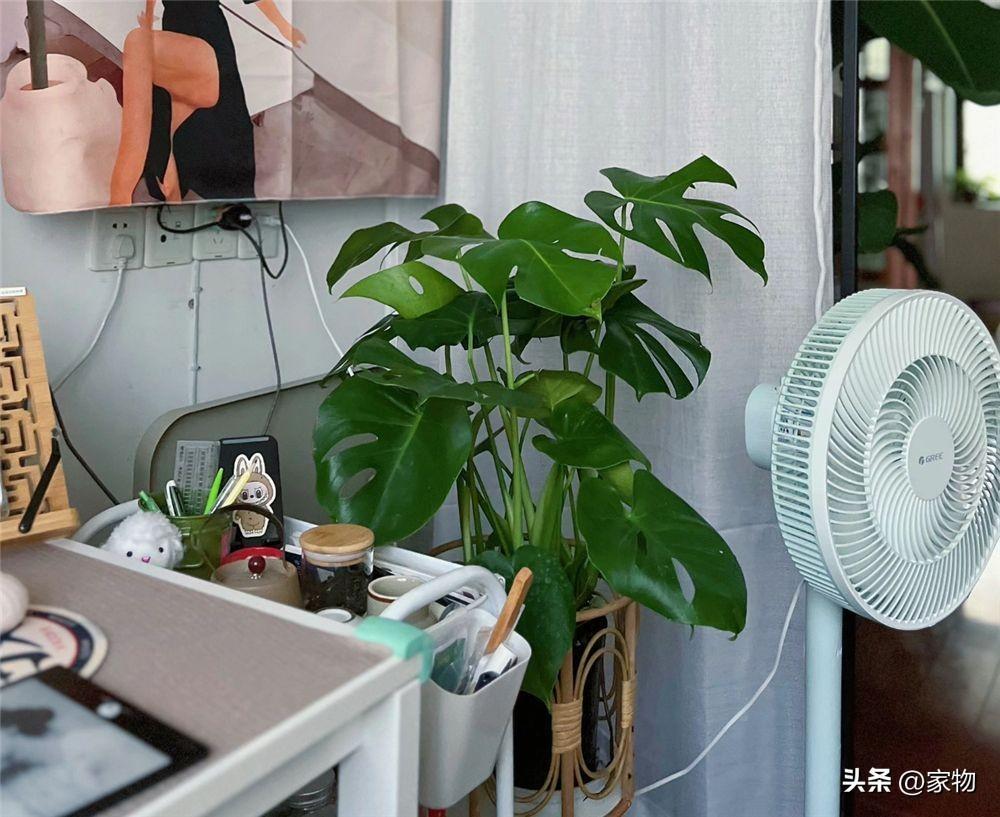書桌旁邊,用掛畫、綠植進行裝飾的同事,也儘可能遮擋了老舊的插座,弱化了家中的雜亂感,這種兼顧自然柔和與隨性的裝飾,在這間迷你小臥室中“屢見不鮮”。