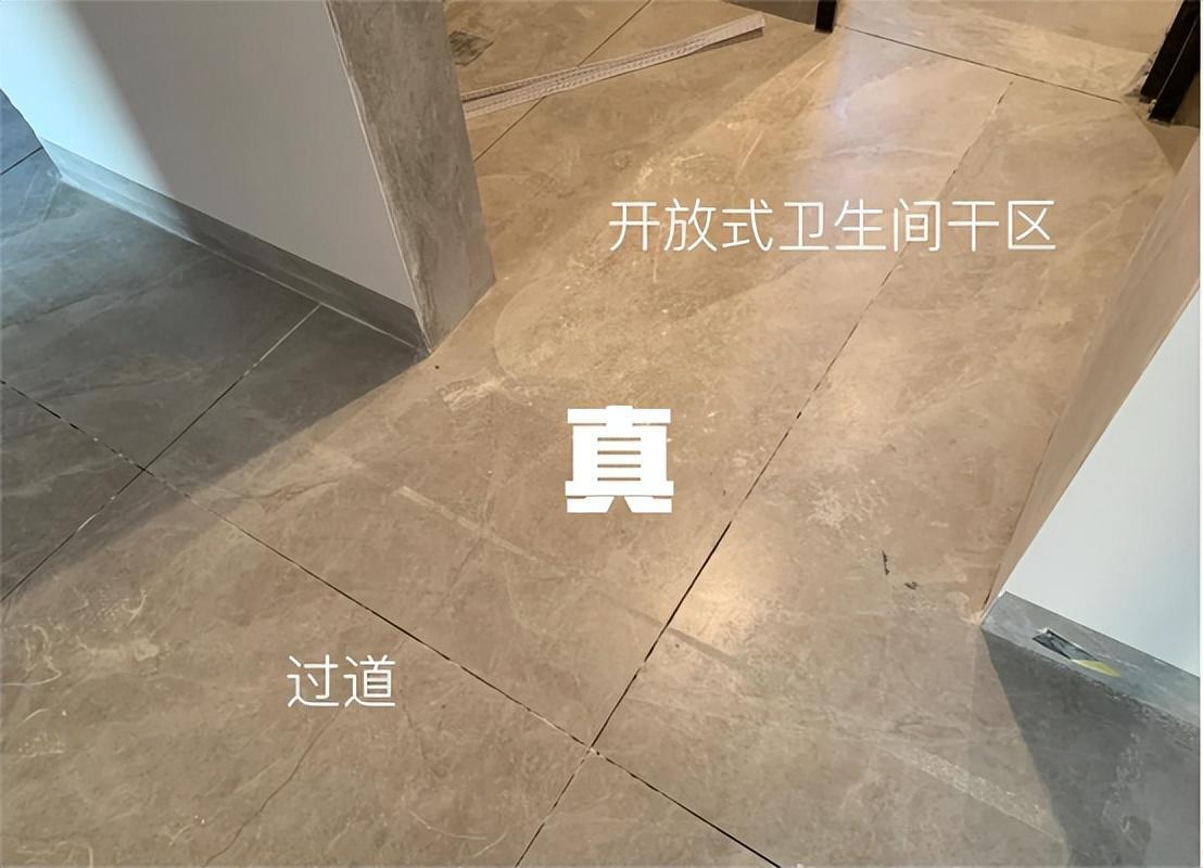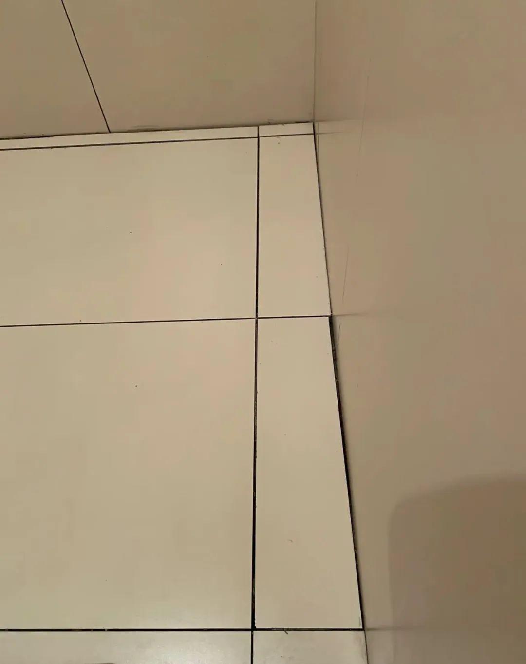 有網友吐槽,貼瓷磚前是非常明確地跟師傅說要通鋪的,結果監工時一個不注意,溝通沒細緻到位,廚房和客廳的連接處就被師傅用瓷磚切割出了過門石。