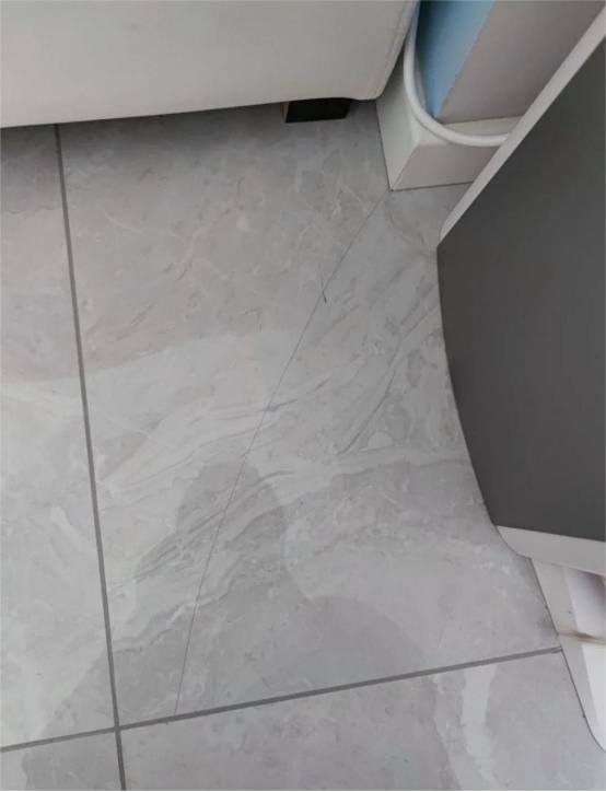 全屋通鋪還有個缺點,只要是在過道轉角處等切割過的地磚,如果處理不到位,時間長了或者受力不均,很容易開裂。前期沒法發現,等你入住了,慢慢的會發現這裏一條裂縫,那一條裂縫。