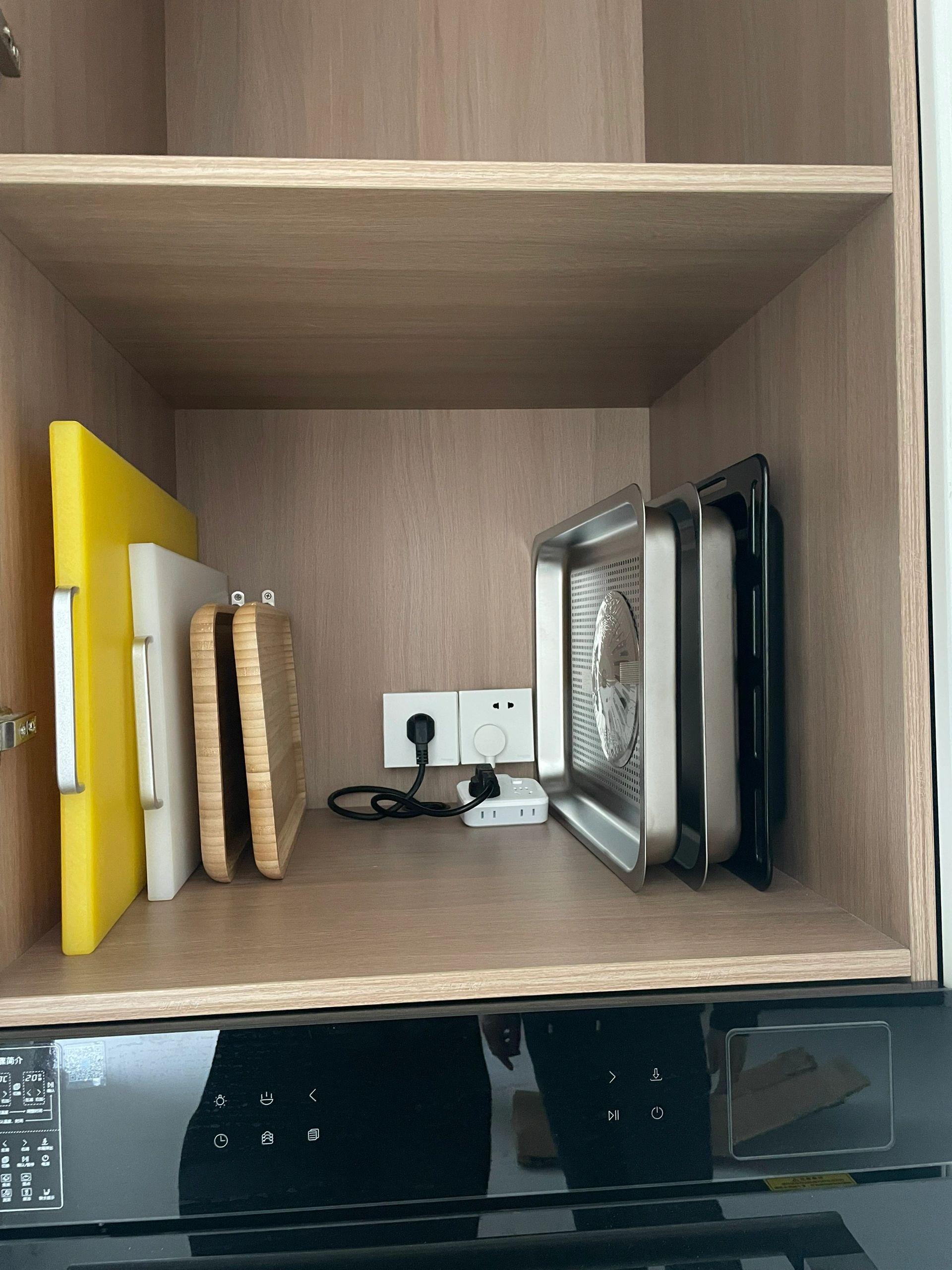 家裏如果烤盤、蒸盤、托盤、各種砧板比較多的,下面這位博主@“小劉而已”的收納思路真心可以安排上。