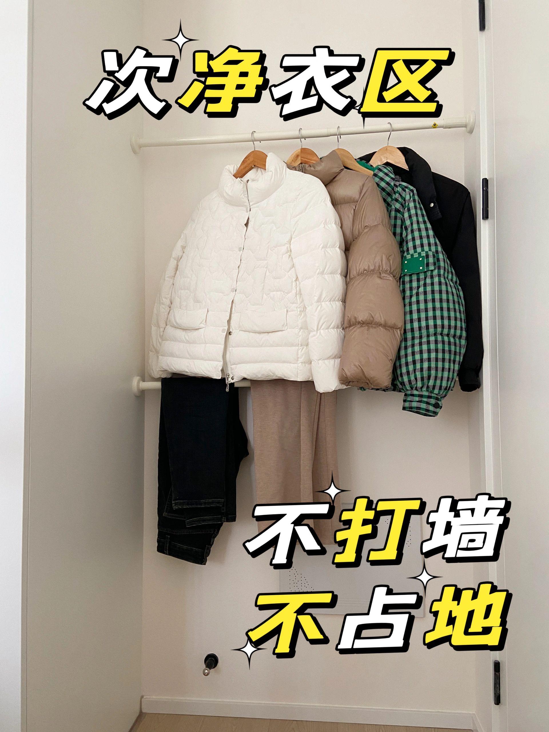 關於隔夜衣物的存放問題,有人會選擇買這種落地的次淨衣架,也有會選擇在裝修時,給櫃子處單獨留一個空地,用來懸掛隔夜衣物。