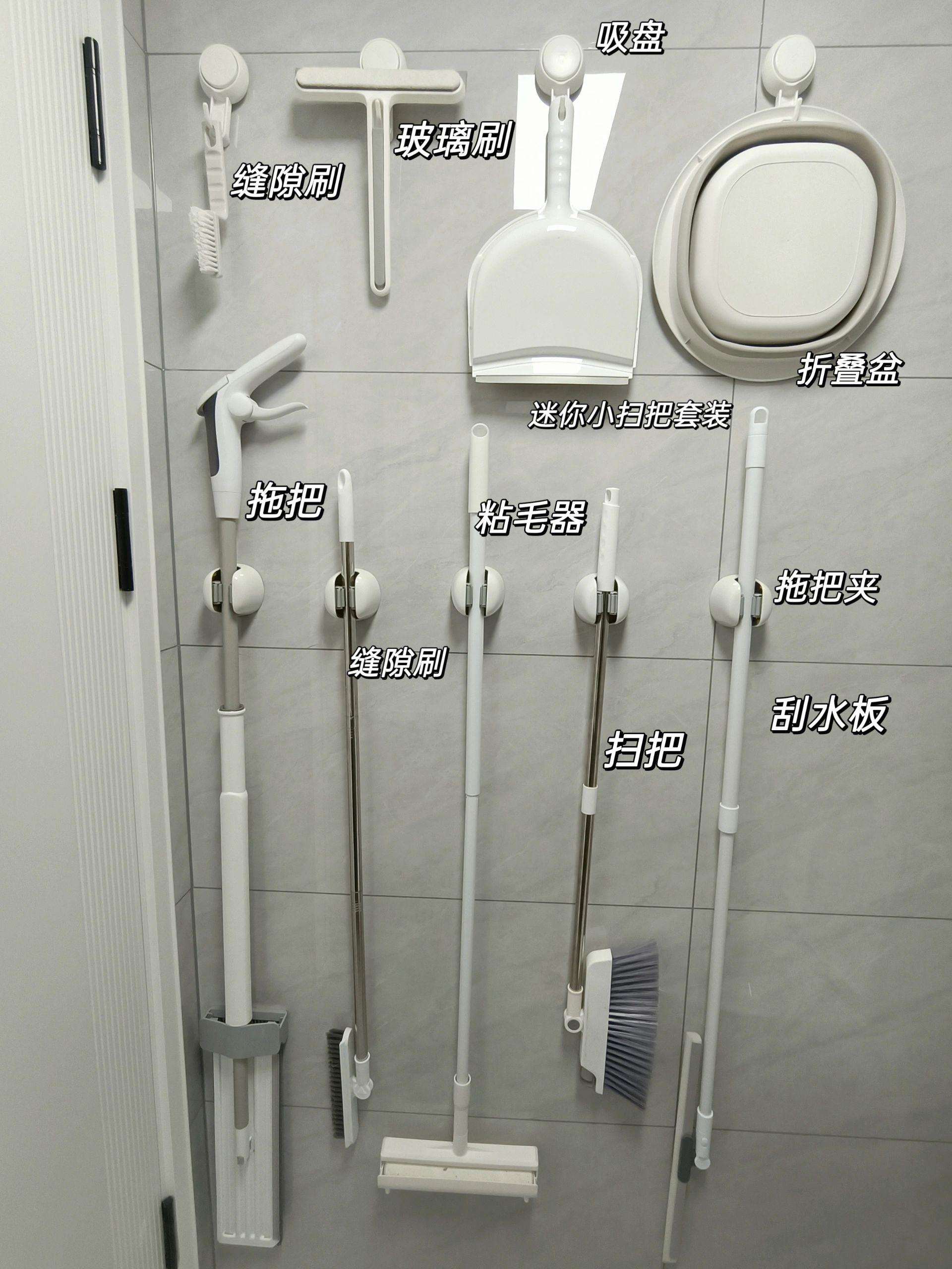 這樣,家裏全套的手持清潔工具基本靠這一面牆,就能完美收納了,真是精緻又實用。