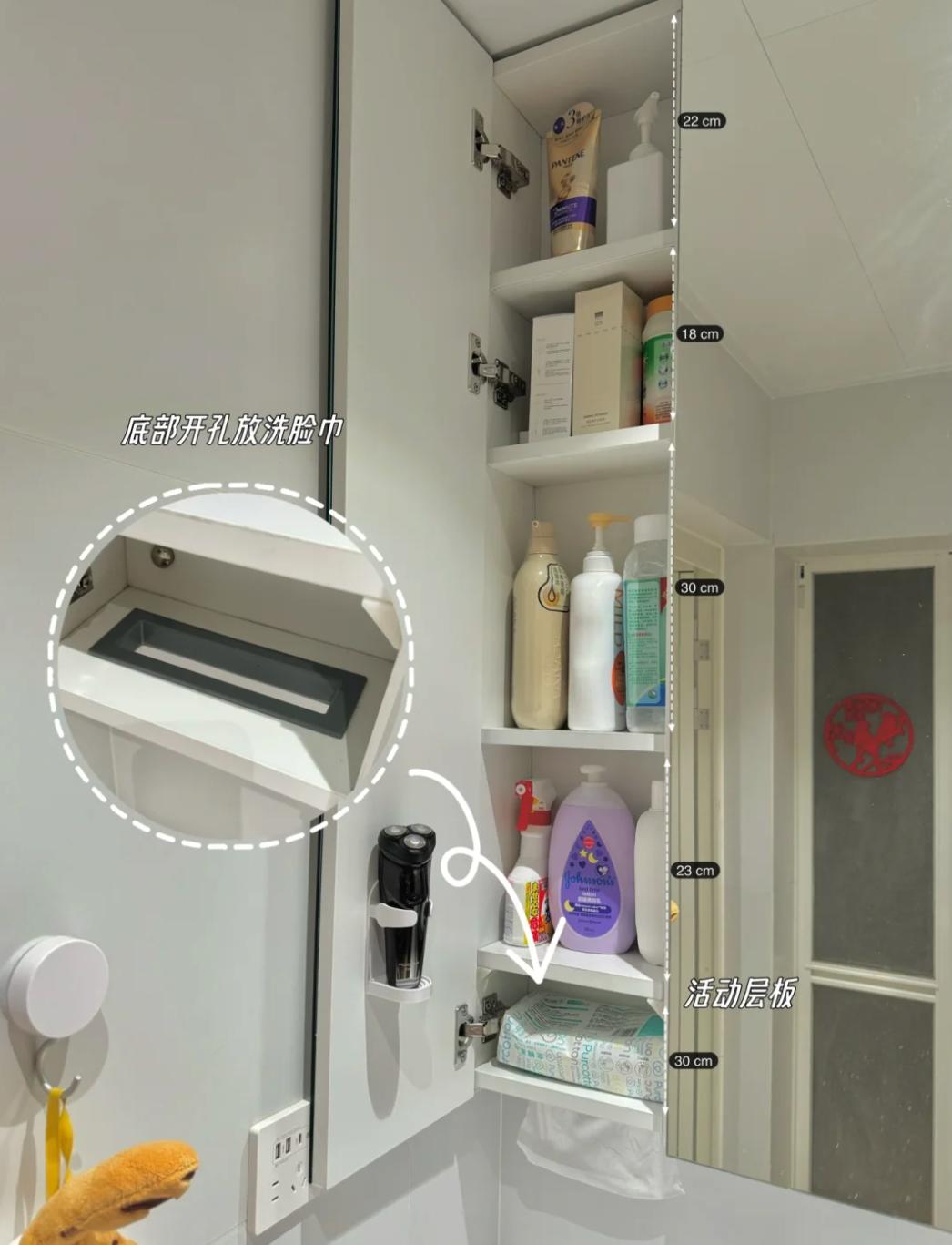 這一條,適合家裏洗漱區雜物多的,如果你打算裝鏡櫃提升收納空間,不妨學學這位博主@“花椒奶奶”的“改良式鏡櫃收納”,相信看完後你會愛上。