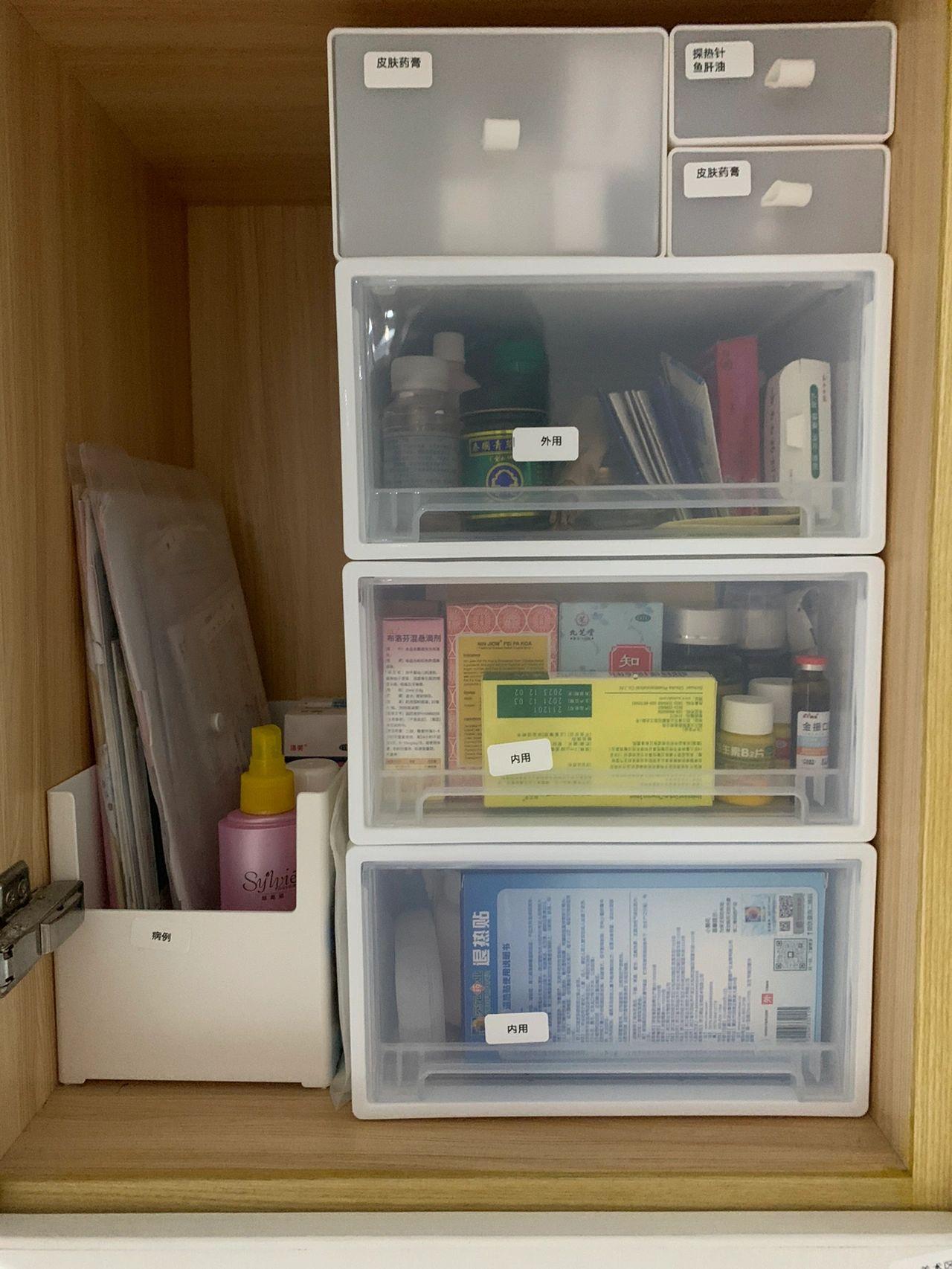 我試了試,要比常見的藥箱用着省事,因爲每次用藥箱,要先掀蓋,再把底部的藥拿出來,來回整理真的很麻煩。但是用抽屜櫃後,一拉一取,用完立馬能歸位,整潔不亂!