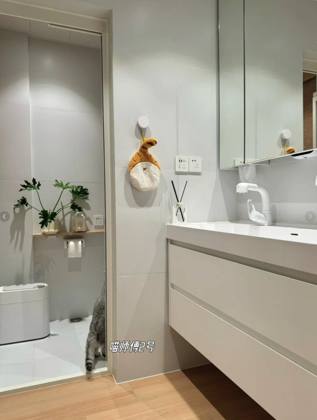 衛生間門一般都是內開,而門後的“夾縫空間”,其實也是一個非常好利用的“黃金收納區”。