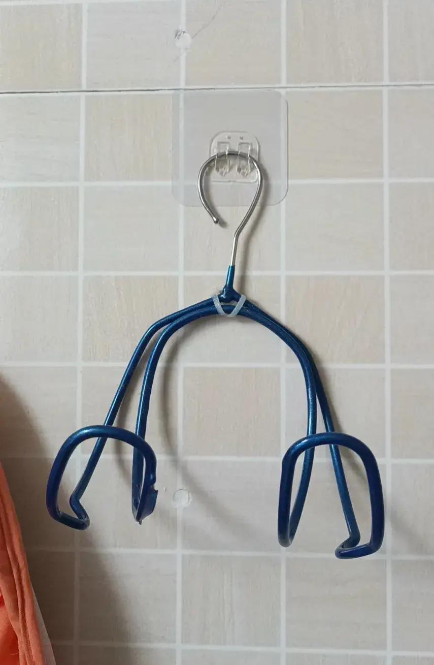 同樣給人帶來衝擊的還有吹風機收納,一直需要花錢買收納輔助的吹風機,原來用一個破衣架也可以。