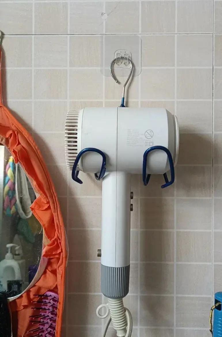 扎的越緊,後面的凌亂就被吹風機遮的越多,掛上吹風機乍眼望過去,就是幾個掛鉤,看着也不醜,但性價比,可比買來的吹風機收納高多了。