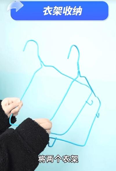 把舊衣架對摺,再把下面的折口稍稍向外拉,給衣架留足進出的口,既好放又好拿取,衣架也不用亂糟糟了。
