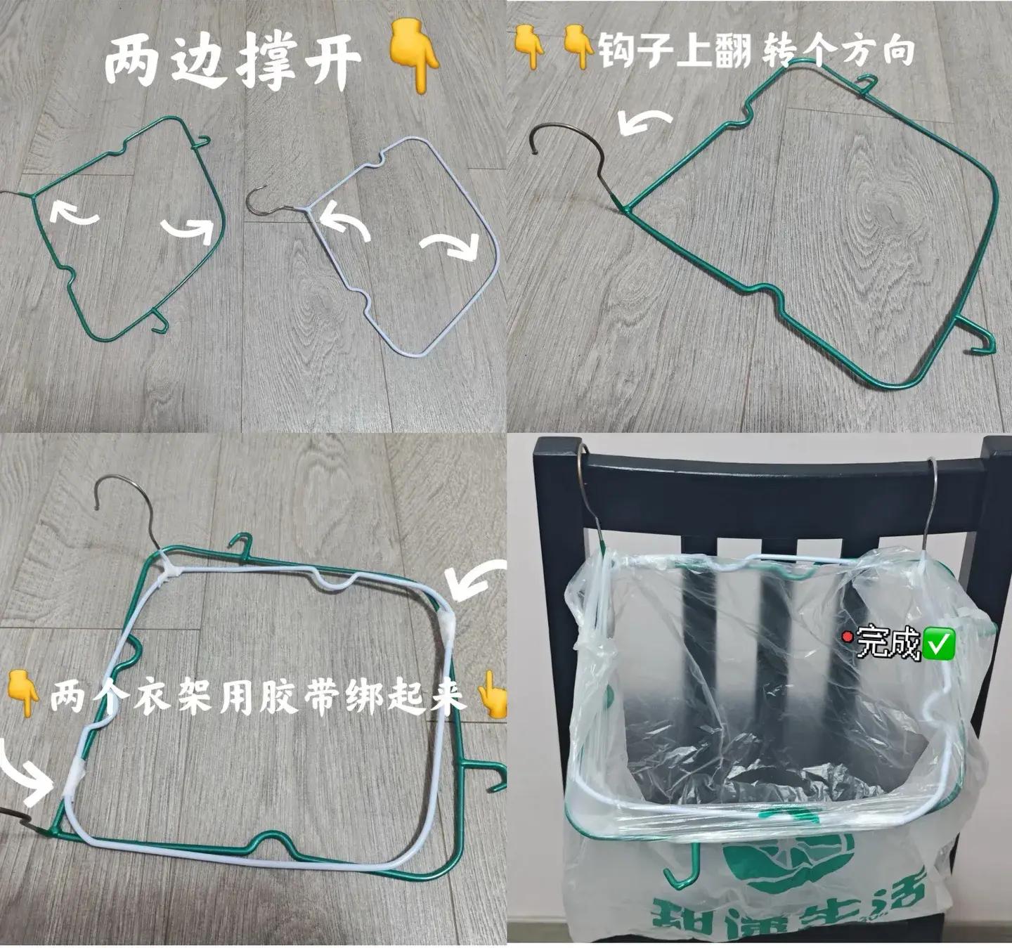 我是打死也沒想到,破舊的衣架,稍微擰巴擰巴,還能做成當下流行的壁掛垃圾桶,關鍵步驟簡單,有手就會。