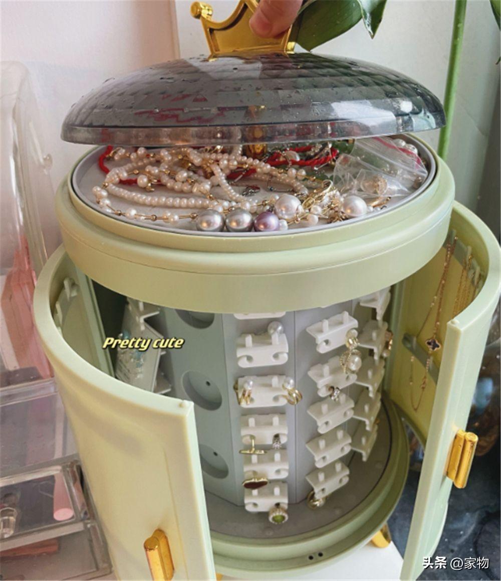 哦對了,剛纔忘說了,首飾收納,也是梳妝檯的重中之重,各種小件首飾真的特別容易顯亂,和化妝品收納盒一樣,將耳環、戒指、項鍊等小首飾都集中在一個收納盒裏,需要戴的時候拿出來也會方便不少。