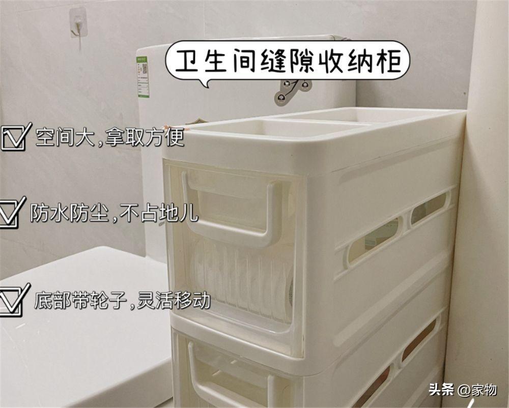 衛生間其實有很多縫隙空間會被浪費,馬桶旁邊、櫃子側邊、門後面……其實這些冗餘空間,完全可以充分利用起來,別的不說,放上一個縫隙收納櫃就剛剛好。