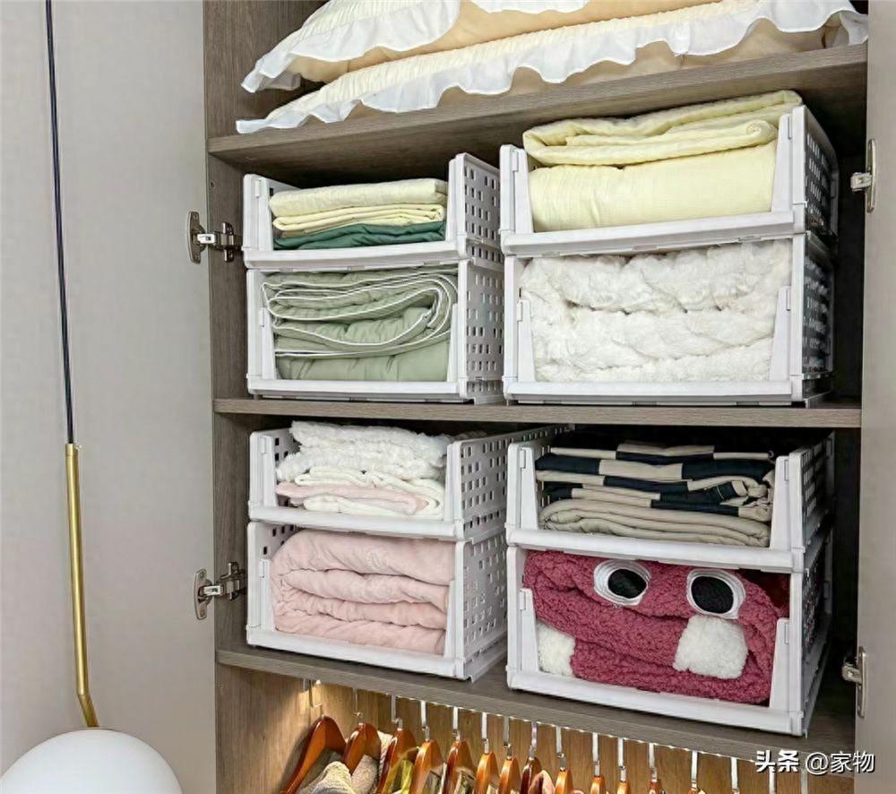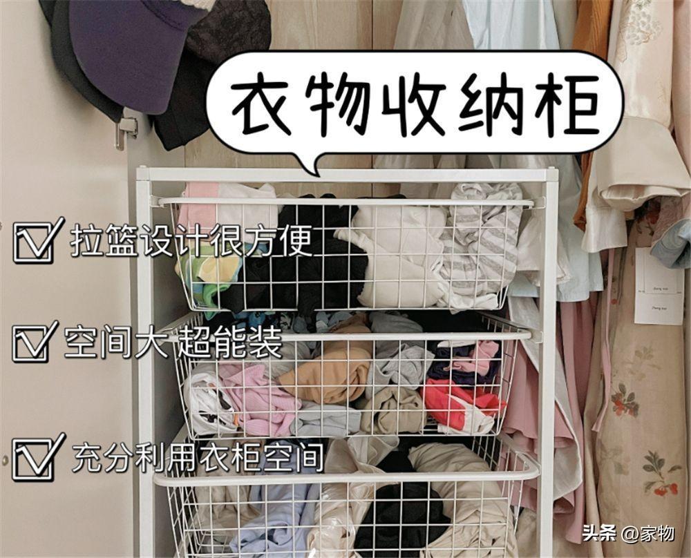我是建議用類似這種的衣物收納拉籃,既能堆疊利用縱向空間,又可以抽拉利用櫃內深度,一舉兩得,收納些小件衣物再合適不過了。