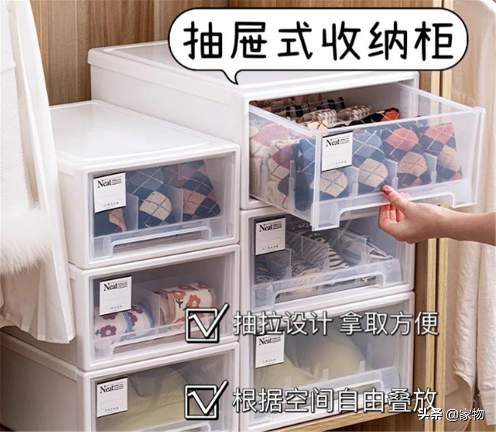 衣櫃裏除了剛纔所說的拉籃,也可以準備一些抽屜式的收納櫃,它們主要是用來收納內衣的,防塵防潮效果會好很多,當然,也可彌補衣櫃內抽屜空間不足的尷尬。
