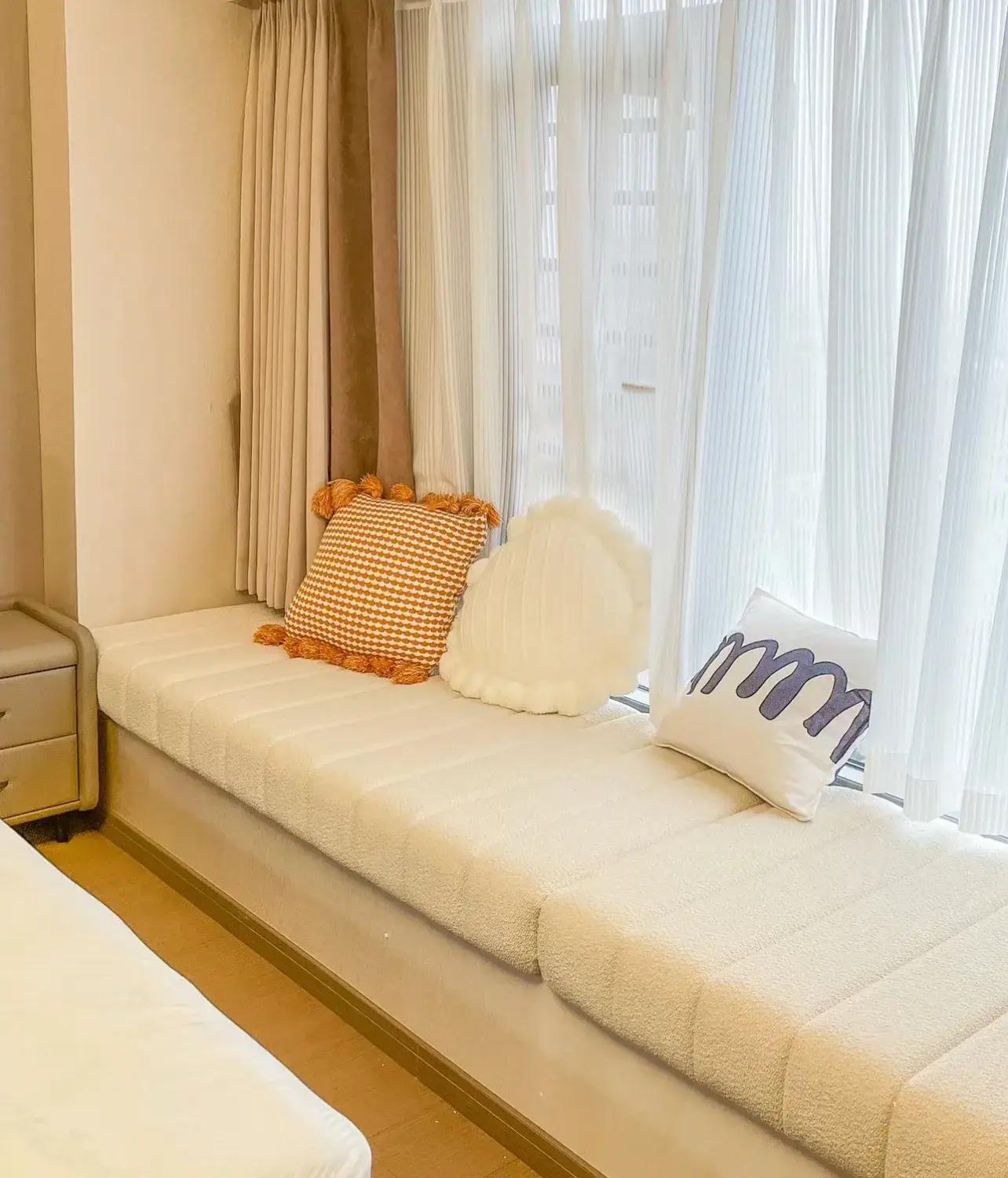 自然也有商家也不肯放過機會,也在推陳出新,設計出比較緊跟潮流的樣子。比如下面的這個“飄窗雲朵沙發”!樣子,的確很像沙發、看起來也很舒服。