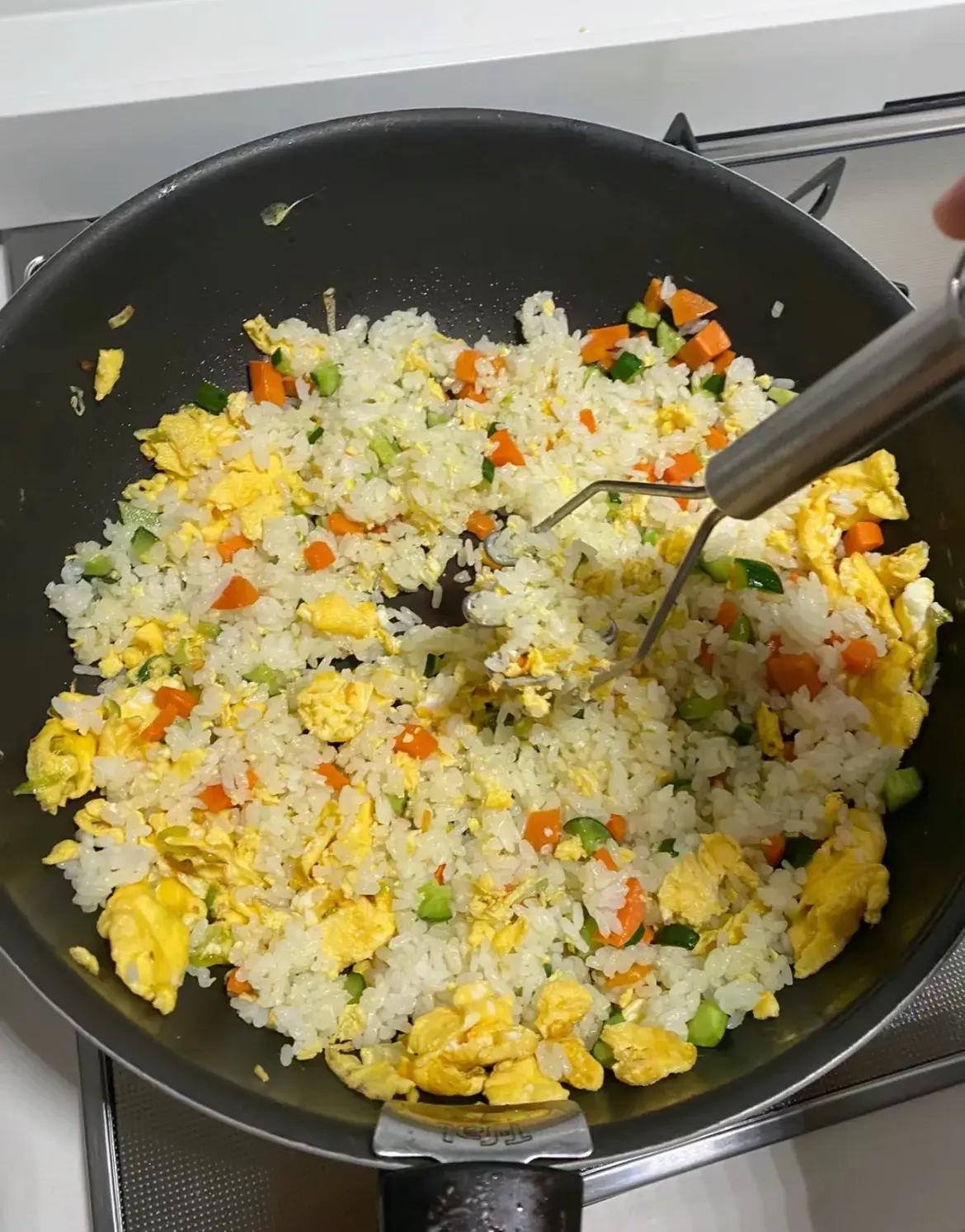 最神奇的是,有一次炒米飯,我竟然也看着她用它攪合,本來用鏟子得搗騰半天的米飯糰,用它咔咔兩下就戳散了,超級快速。