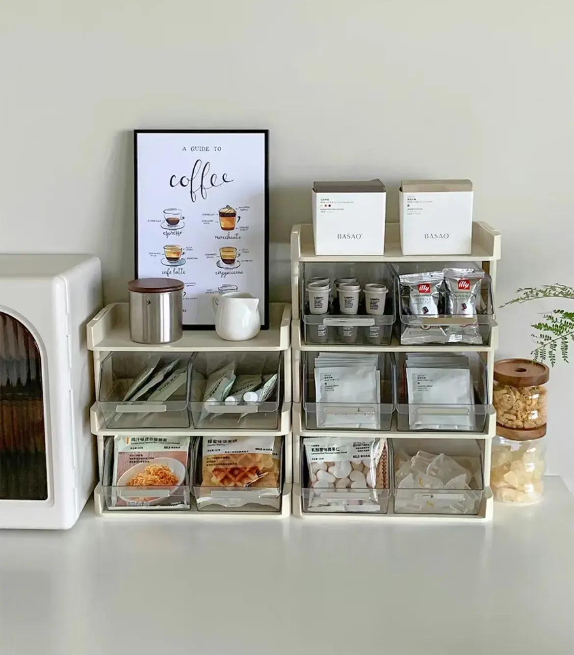 不僅是咖啡、茶包、小零食,各種棉籤、化妝品,甚至手賬、面膜都可以用它整理收納,主打一個哪裏亂、收哪裏,隨便發揮。