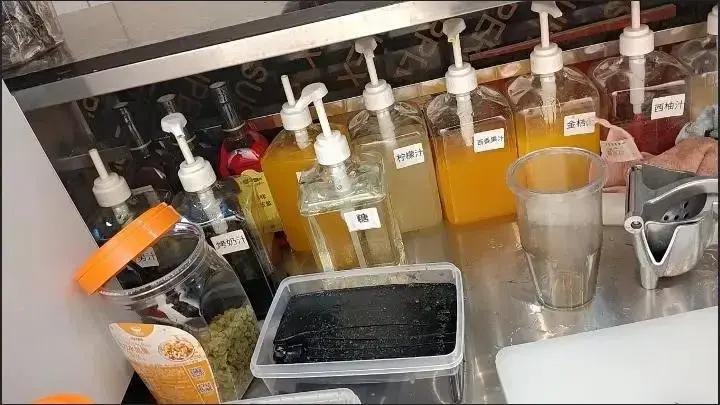 每個奶茶店裏,都有這樣一排桶,用來放糖水、花茶等等,我閨蜜兼職的奶茶店也不例外。