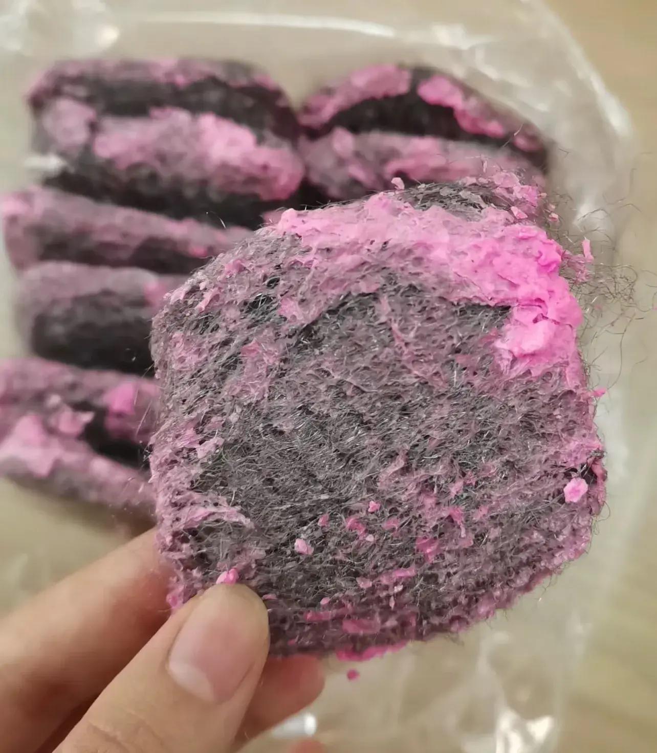 等拿到手之後用了一下,才發現又是個智商稅產品。它就是個比較軟的鋼絲球,裏面加了些皁粉,也不是什麼高級配方皁粉,用來刷鍋子也沒刷多幹淨。