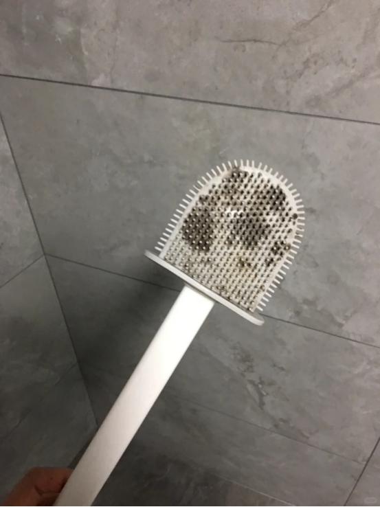 還有硅膠材質的馬桶刷,看着很有質感,實則也是發黴的一塌糊塗,看一眼噁心一天