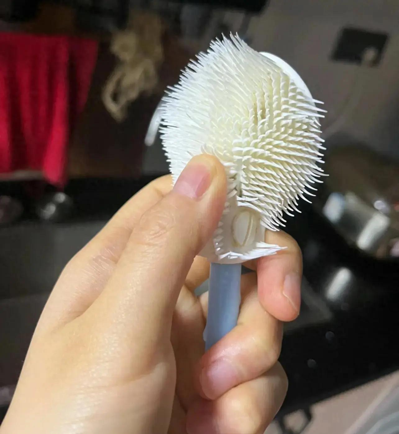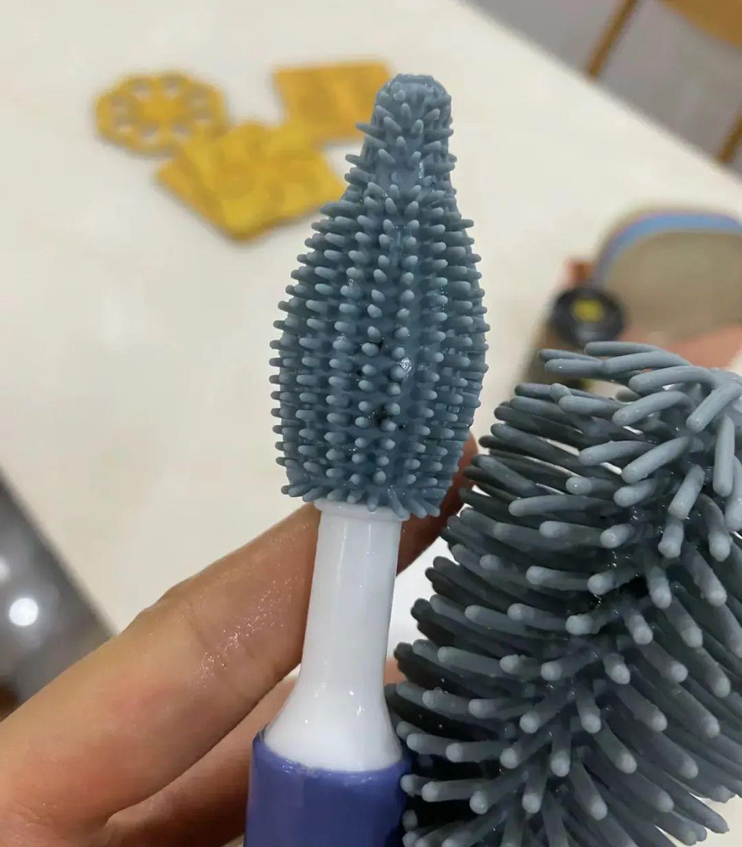 小朋友的奶瓶和其他一些濃稠的飲料,喝完總會粘在杯壁上,因此我買了顏值很高的硅膠刷。看着很高級,手感也好,但是沒想到它就是個美麗廢物,硅膠材質太軟了,使力都不得勁,刷杯子都刷不乾淨,清潔力度非常不咋地!