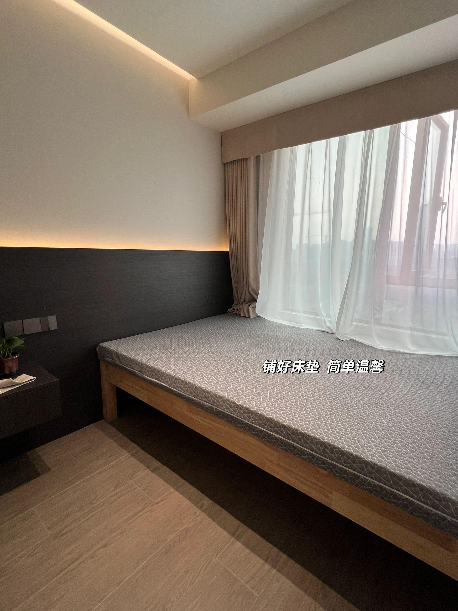 最後鋪上牀墊就是一張大牀了,牀頭靠背也可以設計成一體式的,加上燈帶,非常高級,而且顯大。