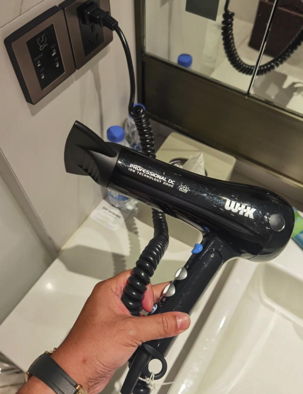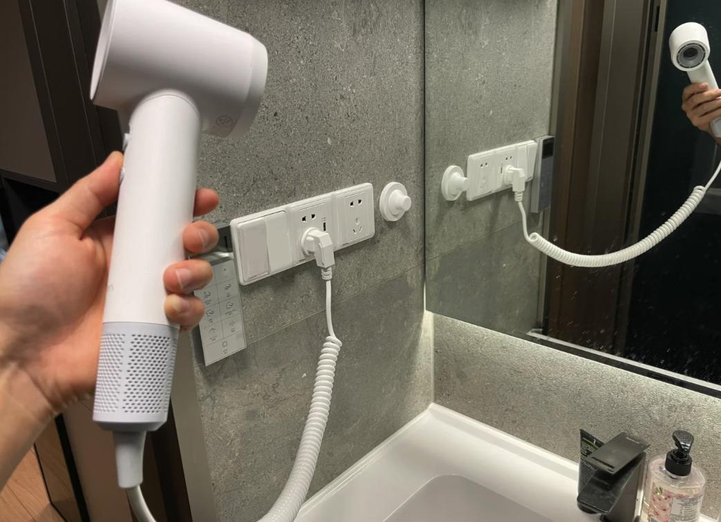 不得不說帶彈簧線的吹風機真的很好用,可拉長可縮短,縮短的時候總長也就30cm,掛在外面也整潔美觀不礙事。