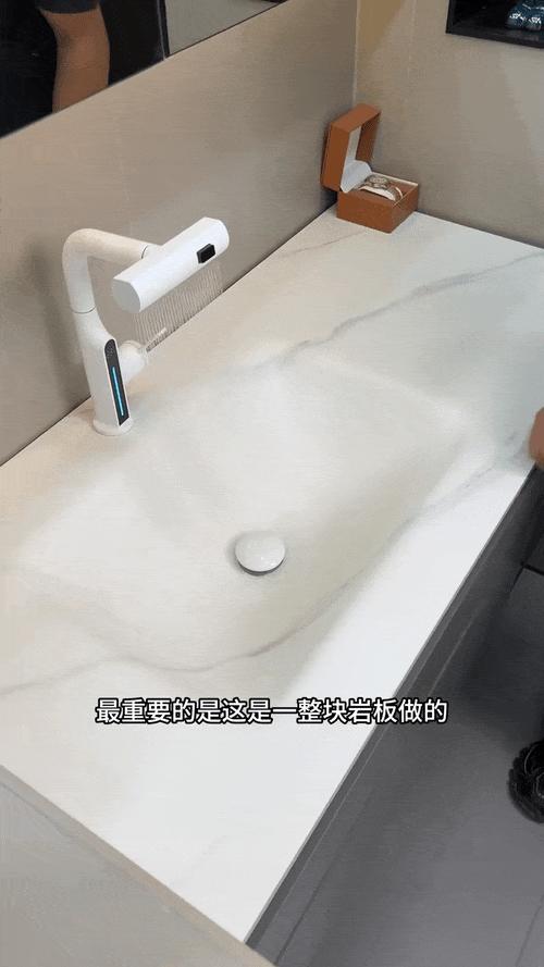 關鍵顏值還高,而且長、寬,和麪盆的位置、大小、深度都是可以隨意定製的,你家衛生間大的話,甚至也可以定製雙水槽熱彎一體。