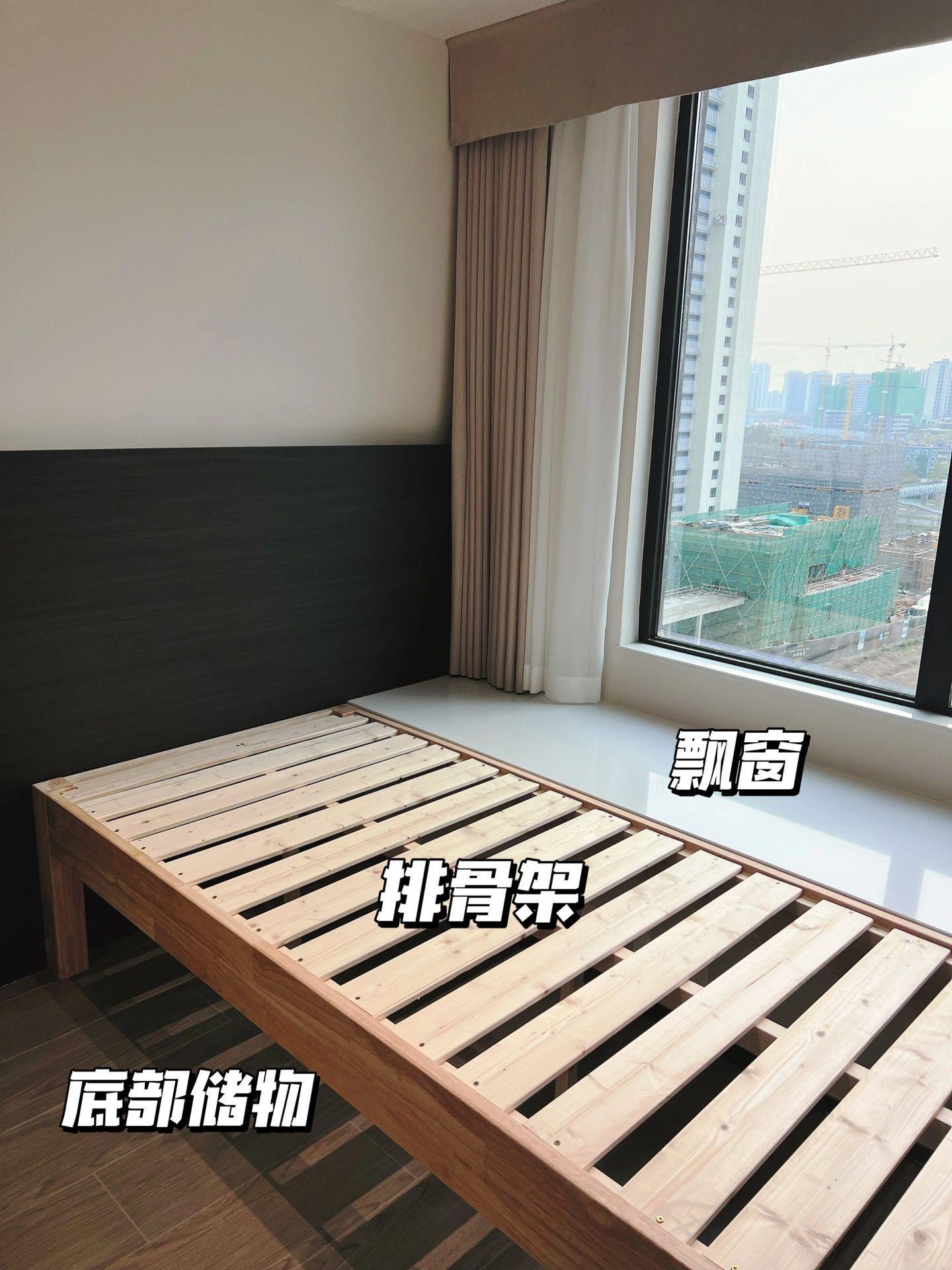 第一招是定做一個和飄窗一樣高度的排骨牀架,這樣牀架裝好後,就能和飄窗持平。
