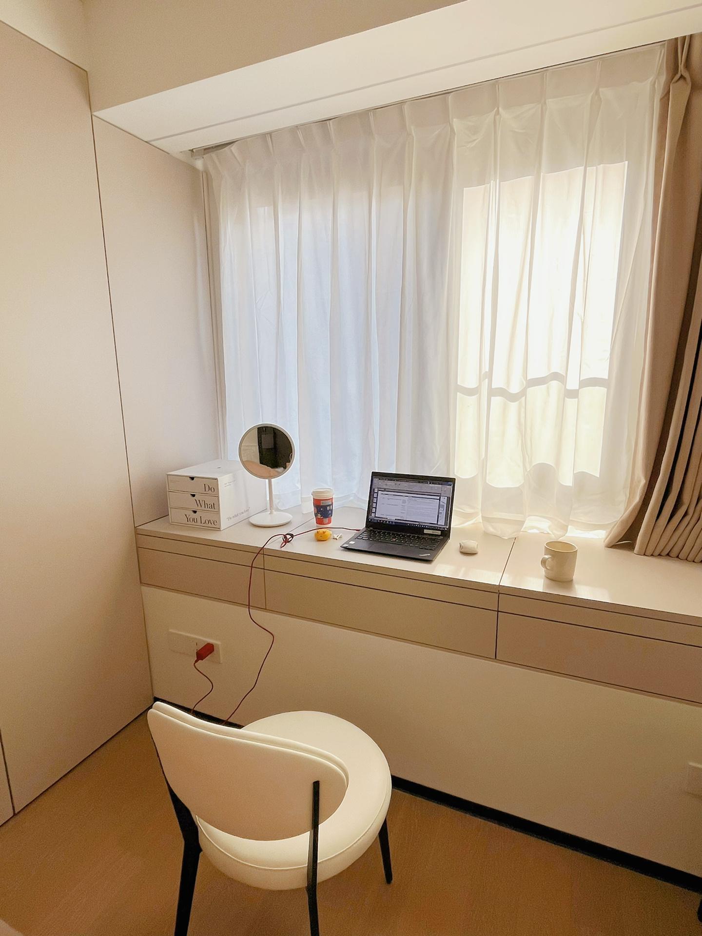 如果飄窗兩側帶牆垛,改不了牀的怎麼辦呢?可以試試下面這第二招,改成可抽拉的書桌。