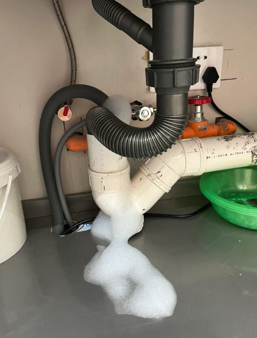 不僅縫隙容易反臭、生蟲,設備同時排水時,還很容易溢水。