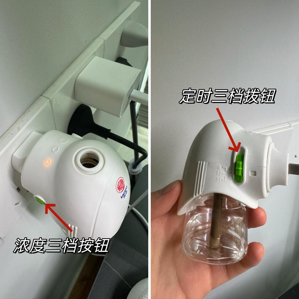 新款不僅支持多檔定時自動關閉,比如8小時、12小時、24小時(也有的款式是4小時、6小時、12小時這樣)。甚至還支持電蚊液揮發濃度的三檔調節。