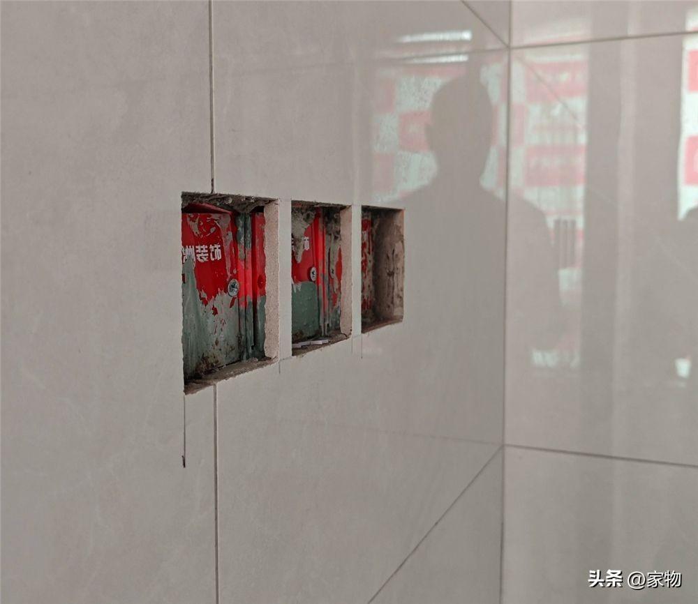 出水口、插座位置的瓷磚,一定要讓瓦工師傅用開孔器,自己用手憑感覺做的開口,要多難看有多難看,這屬於是施工標準的問題,找到差不多的瓦工師傅,他們自己也會自覺用開孔器的。
