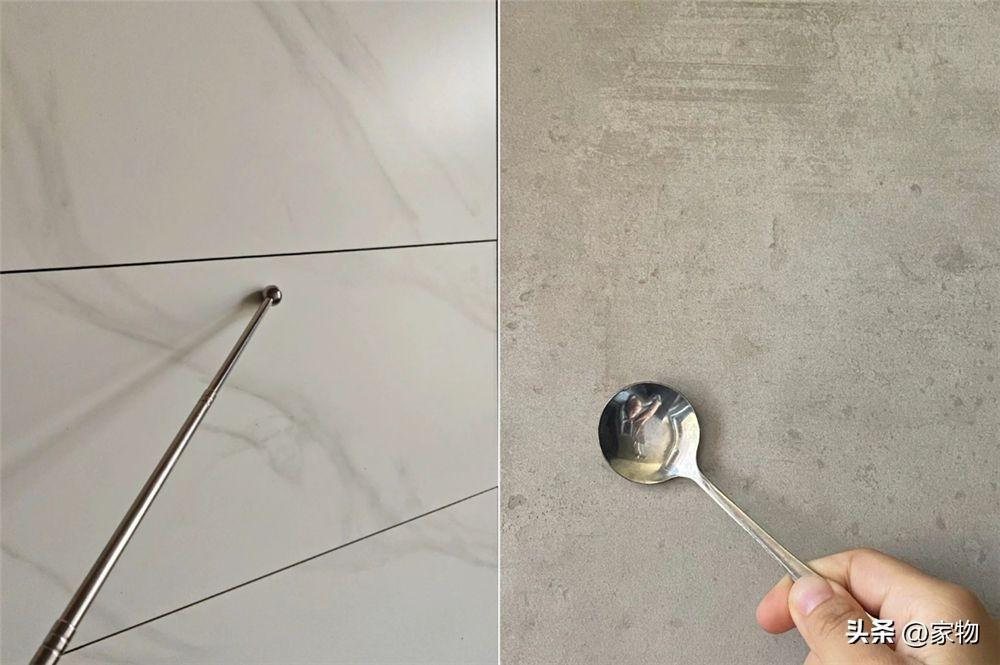 除了衛生間,家裏的地面一定要檢查平整度,現在貼瓷磚水平儀是標配,再出現那種高一塊、低一塊甚至有起翹的,除非是瓷磚差到一定程度,否則不應該。