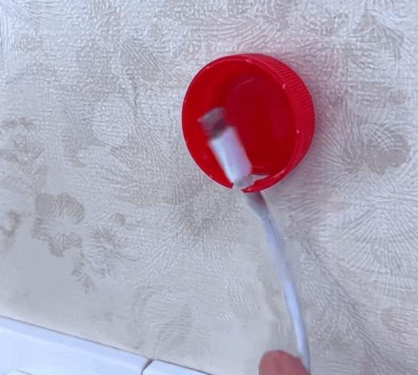 這種固定方式,廚房也能用上,比如砧板收納,如果靠着牆壁總是滑到的話, 那我們可以在下面放兩個挖槽的瓶蓋,固定砧板用