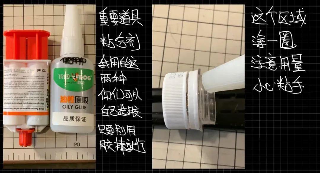 注意要挑瓶口弧度比較明顯的塑料瓶,剪的時候下方瓶口深度,要比瓶蓋深度多一些,用502膠水粘一圈,更牢固,而且防止滲漏。