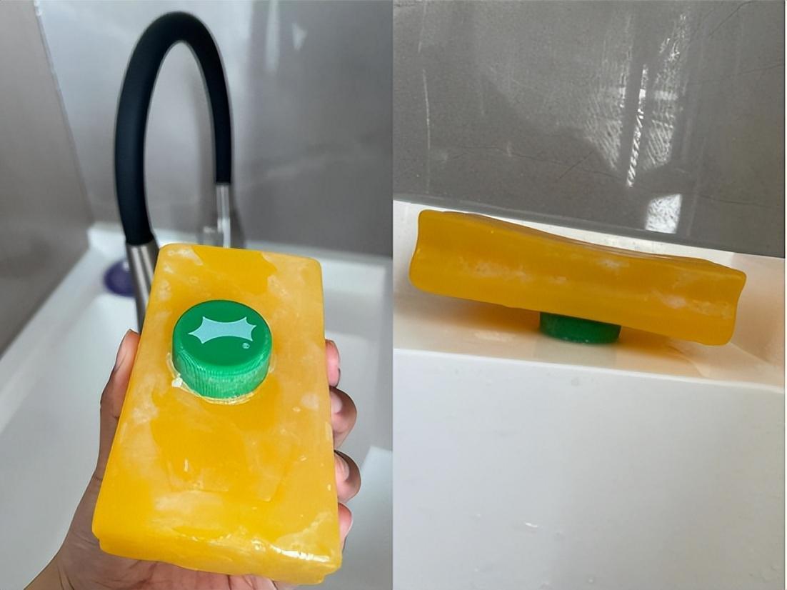 喝完的飲料瓶蓋大力懟進肥皂裏,翻過來,肥皂它四腳離地了!0元肥皂懸浮術~