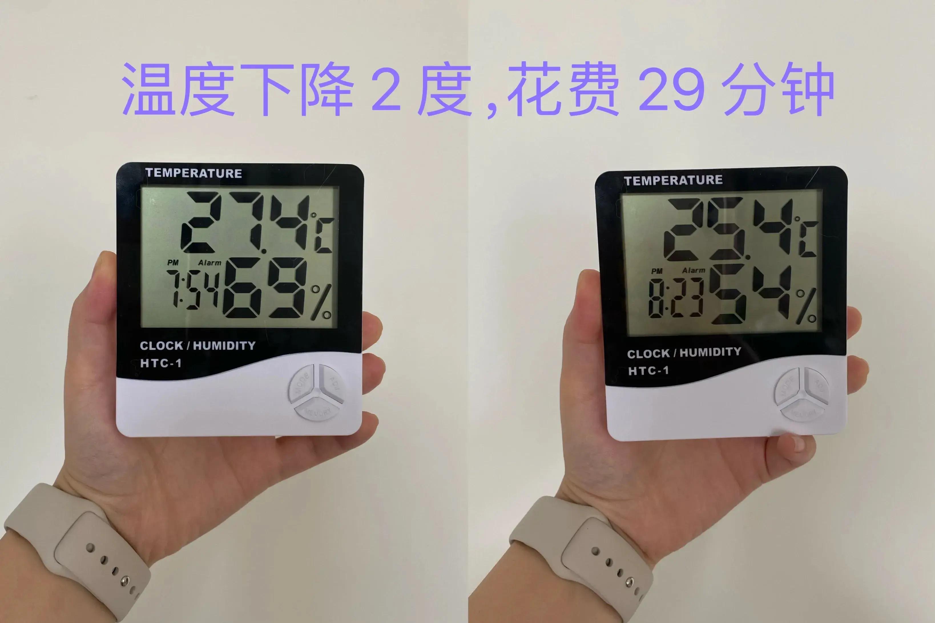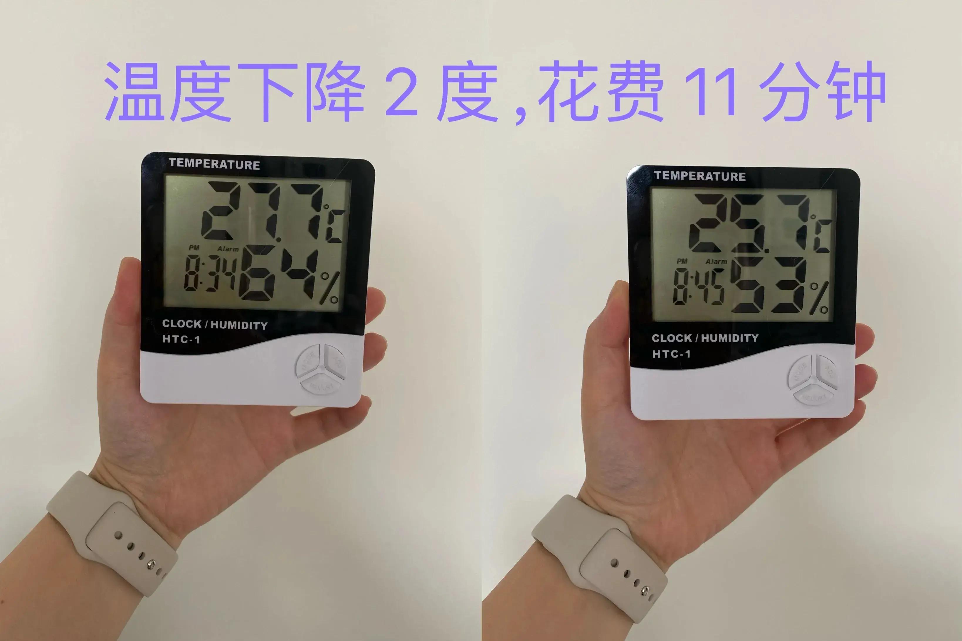 在一個16.5平的房間裏,開空氣循環扇的情況下,室溫下降兩度僅需11分鐘,而不開空氣循環扇的情況下,則需要29分鐘。