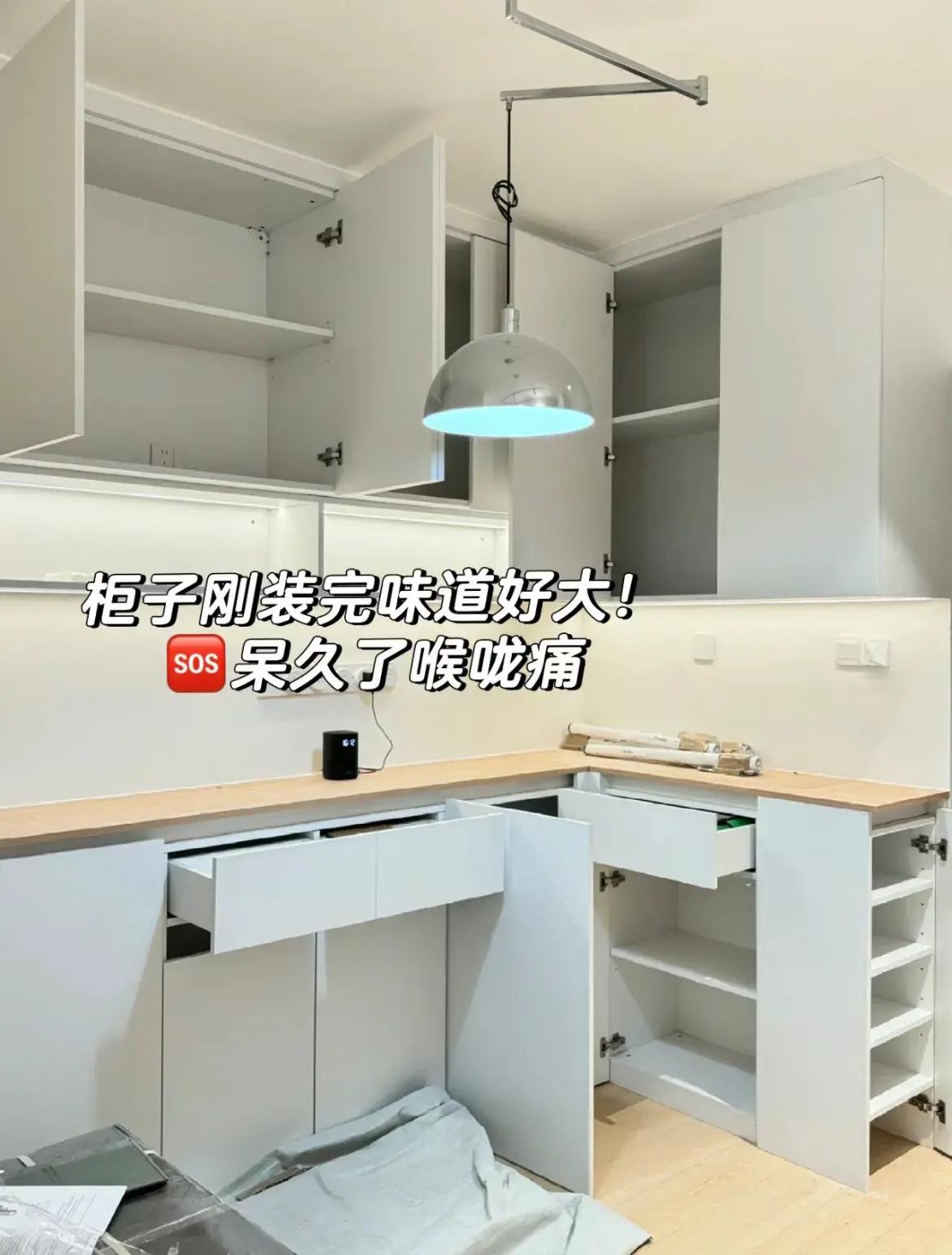 即使選了環保等級高的板材,也避免不了刺鼻膠水味的侵害,以爲新的有點味兒正常,但散了很久還是有味道。