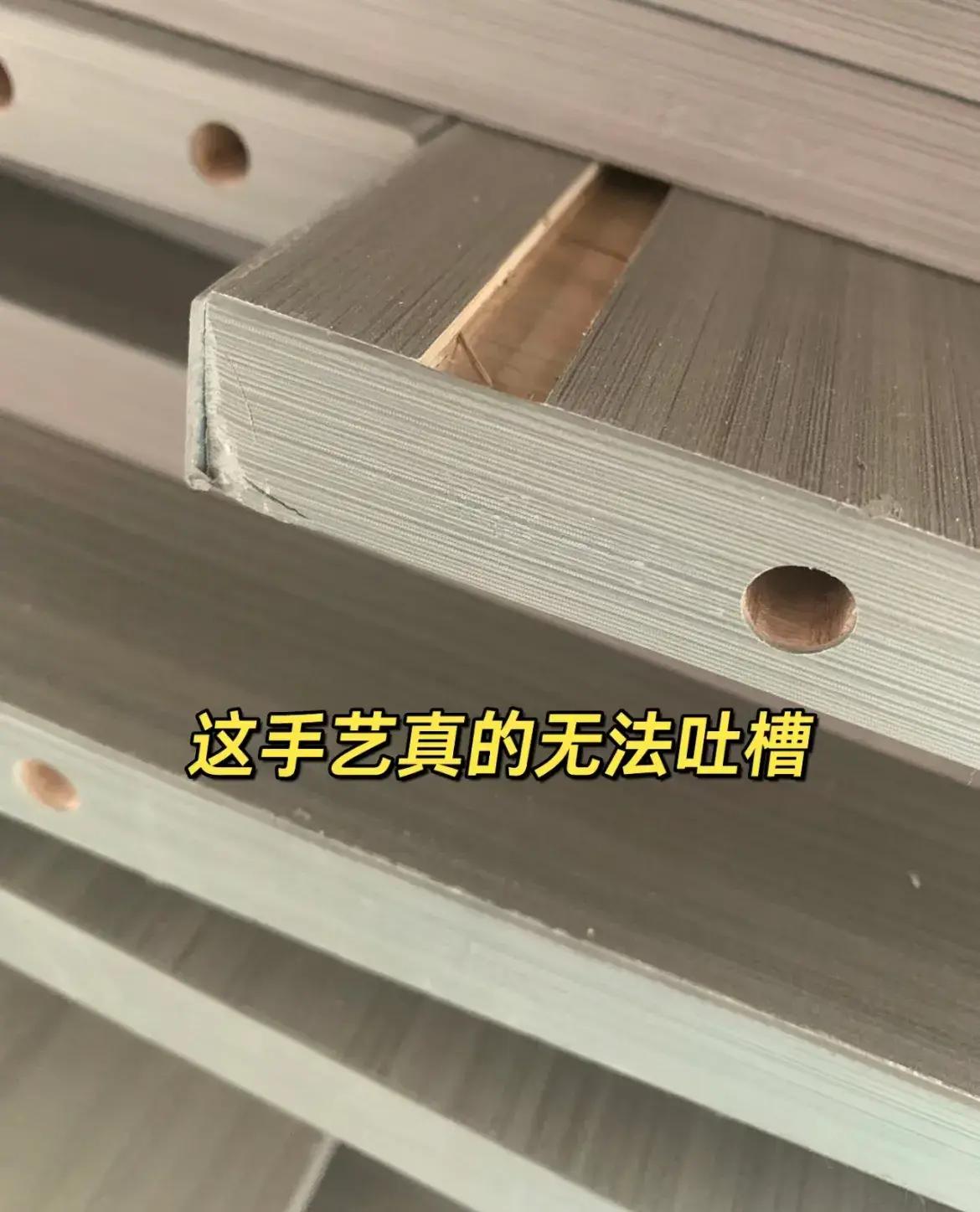 板材都是拉來現場組裝的,安裝過程中有點刮痕在所難免,但是有的櫃子包邊、溢膠、拼接切割可能都存在問題,而且錯誤率也高,再一返場,又是十天半個月的工期。