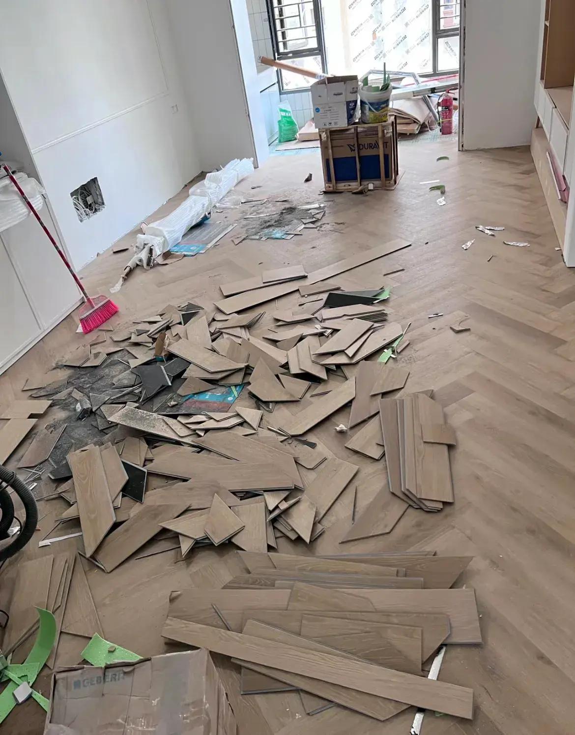 而且,本身異形拼花地板價格就比常規地板貴,鋪完剩下一堆切割一半的地板,扔了心疼,留着又沒什麼用處。